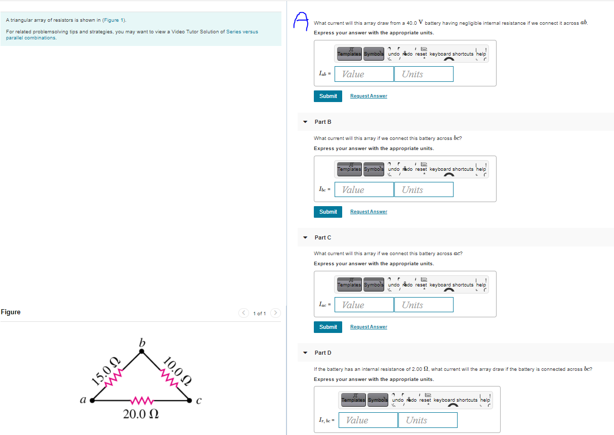 For related problemsolving tips and strategies you may want to view a Video Tutar Salutian of Series versus Part A parallel combinations. Express your answer with the. A triangular array of resistors is shown in Fig.